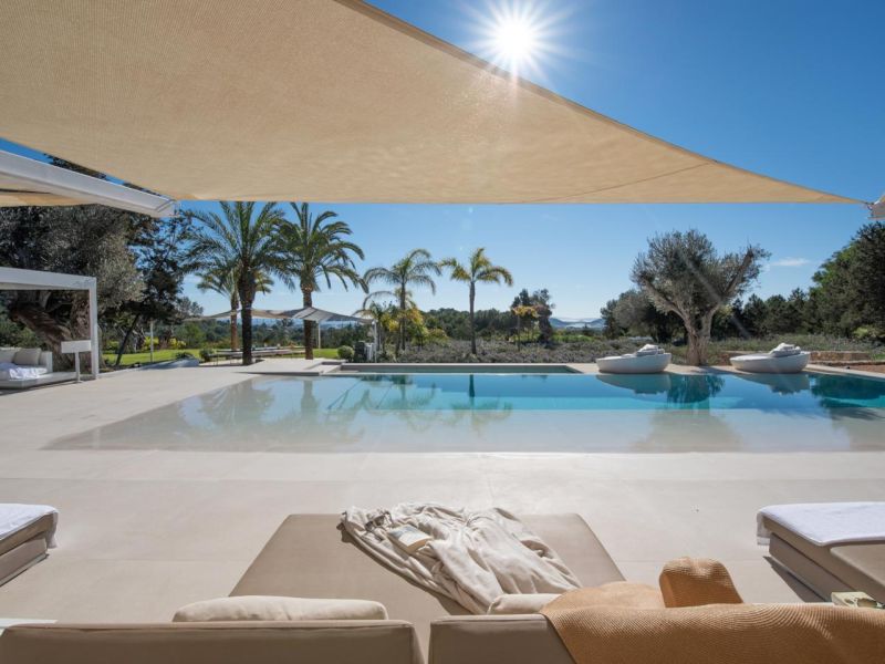 Viva el lujo en esta increíble villa situada en Ibiza, ideal para cualquier temporada. La decoración en tonos blancos y pasteles, complementada con obras de artistas locales, crea un ambiente sofisticado y acogedor. La villa ofrece confort total con aire acondicionado y calefacción por suelo radiante, asegurando una estancia agradable en cualquier época del año.